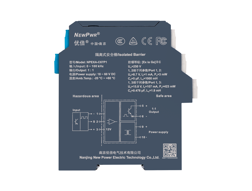 | 介電強度 | ≥ 3000 V AC (本安側(cè)與非本安側(cè));≥ 1500 V AC (電源與非本安側(cè)) |
